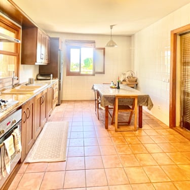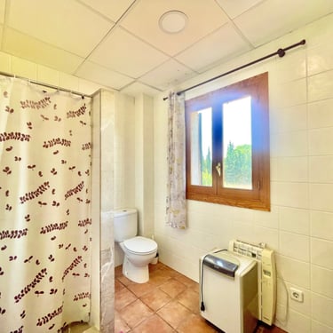 Desde esta planta, podrás acceder a una terraza que brinda vistas despejadas de la majestuosa Serra de Tramontana y el imponente Puig de Randa. Bajo la casa, se encuentra un garaje con capacidad para dos coches y varias estancias adicionales, además de una escalera que proporciona acceso directo a la planta baja. La propiedad cuenta con suministro eléctrico de Gesa y acceso al agua a través de un pozo comunitario.